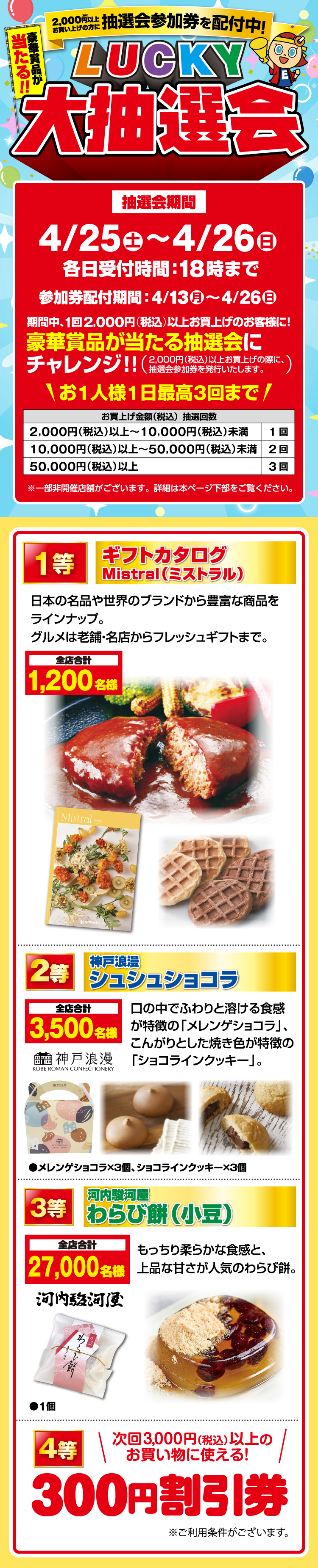 ※景品表示法の規定により景品提供額には制限があります。同一取引にて他の懸賞にご当選の場合、本懸賞が抽選の対象外となる場合がありますので予めご了承ください。