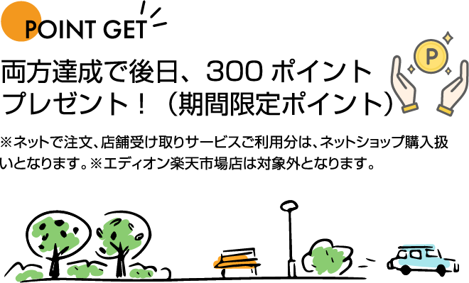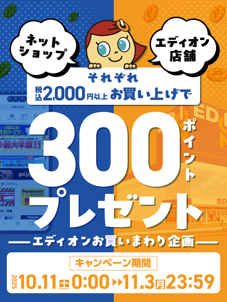 ※ポイントプレゼントはエディオンアプリのプッシュ通知にてお知らせいたします。必ず通知設定をONにしてお待ちください。
