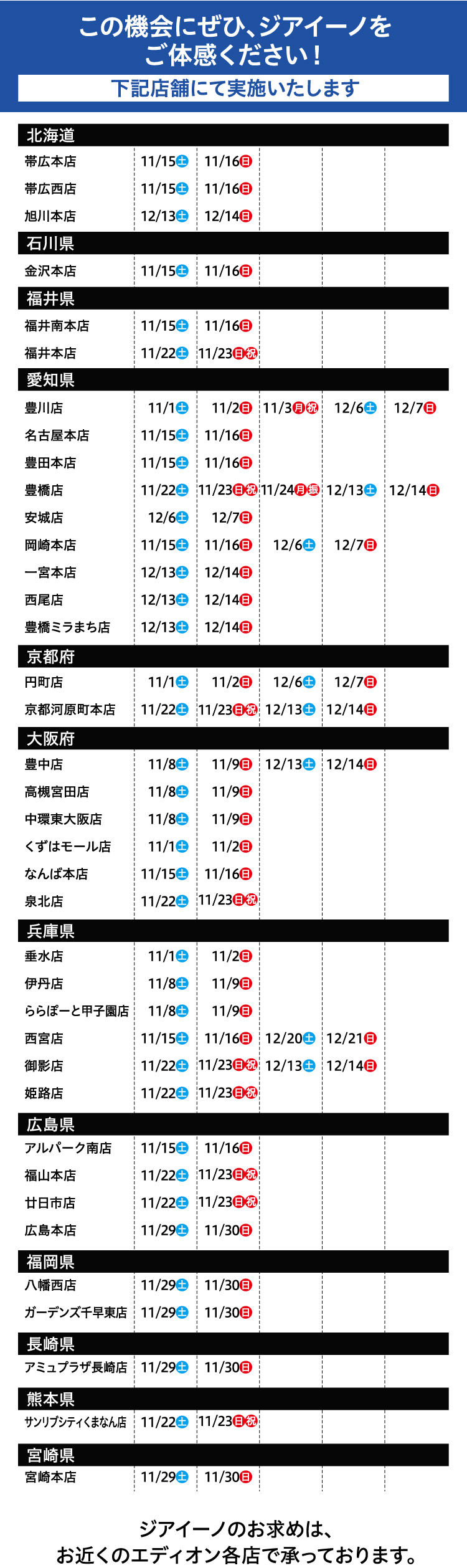 ※メッツ大曽根店(11/1~11/3・11/8~11/9)予定しておりましたイベントは、急遽中止とさせていただきます。