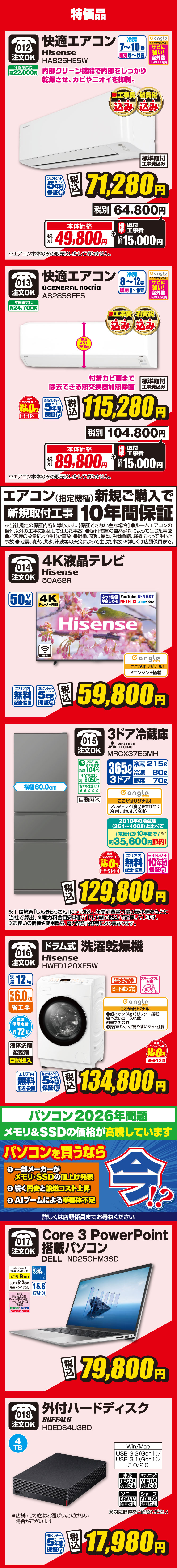 売切御免!限定特価!